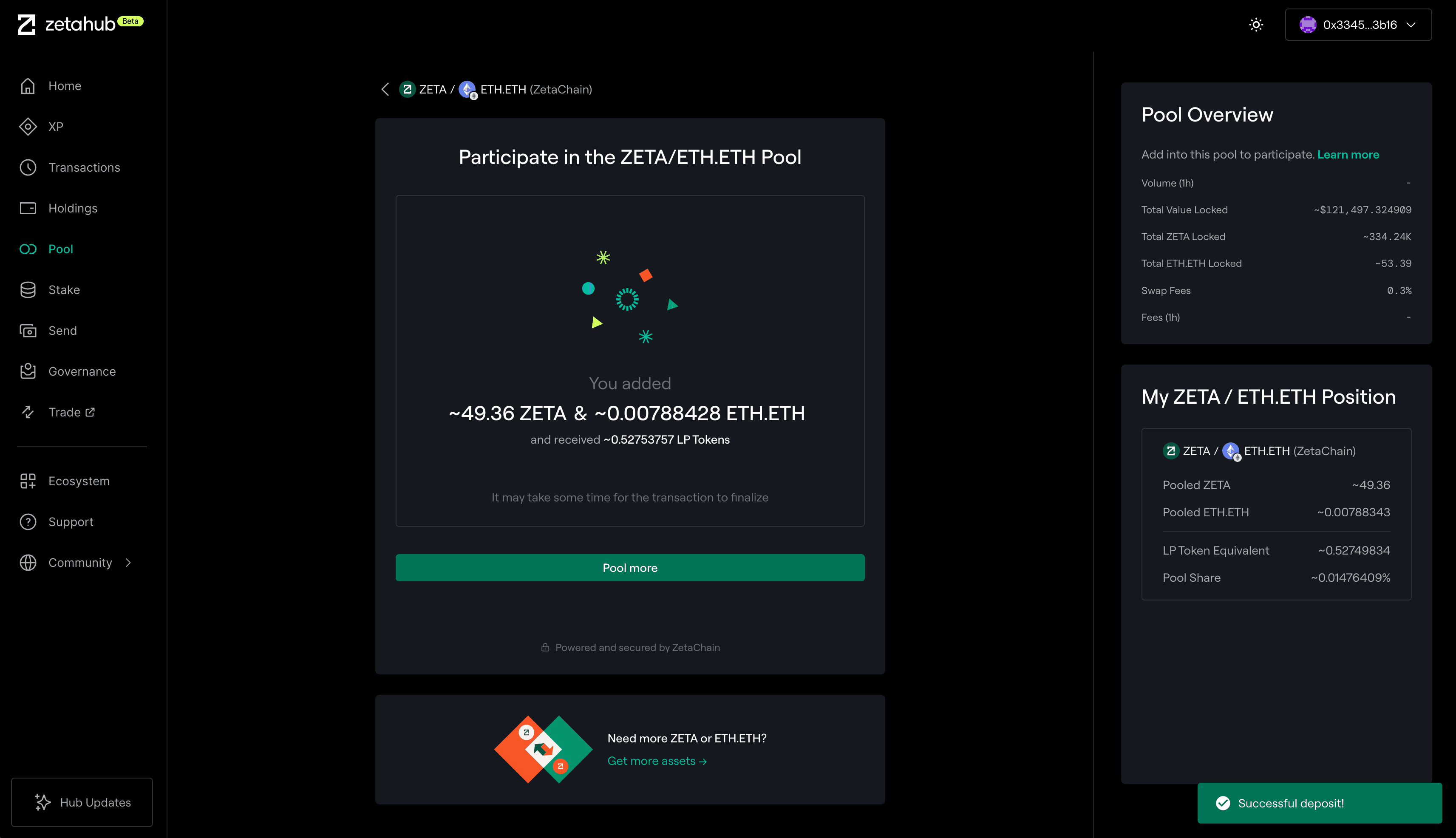 By following these steps, you can easily manage your liquidity on ZetaHub, earning fees and maintaining control over your assets.